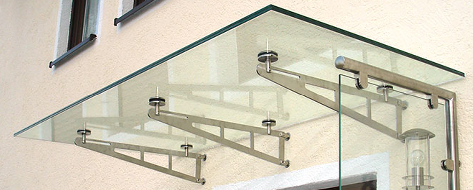 Ihr Glasvordach kann die verschiedensten Formen haben, etwa als Sattel-, Pult-, Tonnen- oder Schmetterlingsdach. Auch hier berücksichtigen wir Ihre persönlichen ästhetischen Vorstellungen und versuchen, eine harmonische Beziehung zwischen Glasdach und Haus herzustellen. Nicht nur der Regen wird vom Glas abgehalten. Auch starkem Winddruck und Schneelasten muss es widerstehen. Deshalb sind die von uns eingesetzten Unterkonstruktionen sehr stabil. Sie bestehen wahlweise aus Edelstahl, verzinktem Stahl, aus eloxiertem Aluminium, können pulverbeschichtet sein oder auch aus Holz gefertigt. In der Ausführung mit Dachrinne oder Tropfkante im Verbundsicherheitsglas weist das Glasvordach alle Eigenschaften eines richtigen Daches auf.