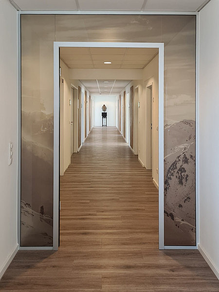 Um den Eindruck von Offenheit zu gewährleisten, bringen wir sehr filigrane, kaum sichtbare Befestigungen an. Zudem bieten sich viele Gestaltungsmöglichkeiten an, wie Sie nur auf Glastrennwänden machbar sind. Sie können problemlos digital bedruckt, sandgestrahlt oder mit Folien beklebt werden. Lassen Sie sich von uns beraten!