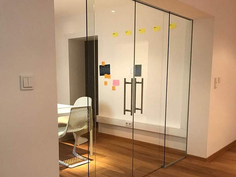 Damit Ihnen unseren Ganzglasanlagen in München über einen langen Zeitraum gute Dienste leisten, montieren wir Ganzglastrennwände oder auch Ganzglasschiebetüren aus hochwertigem Sicherheitsglas. Dieses kann je nach Ihren Anforderungen klar, matt oder teilsatiniert sein. Bei einer Vor-Ort-Besichtigung unterbreiten wir Ihnen gern Vorschläge, wie Ihre Ganzglasanlage am zweckmäßigsten und auch am wirkungsvollsten in Ihre spezifischen Raumverhältnisse integriert werden kann. Wände aus Glas lassen sich raumhoch installieren. Wir können sie teilen, mit einer Schiebe- oder Drehtür versehen oder eine elegante Aluminiumkonstruktion einziehen.