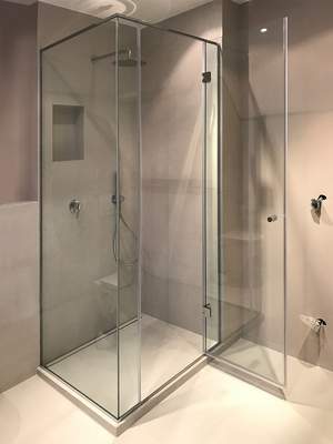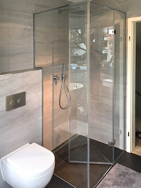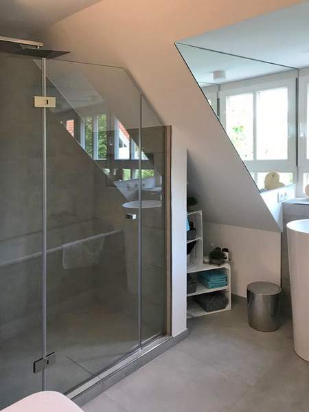Eine von uns gefertigte Glasdusche oder Duschtrennwand für Ihr Badezimmer in München und Umgebung ist immer maßgefertigt. Schließlich haben Bäder oft spezielle Formen, die es zu berücksichtigen gilt und nicht mit Meterware bestückt werden sollten. Auch Dachschrägen oder Ausschnitte für Mauersockel machen einen Badewannenaufsatz oder eine Duschkabine aus Glas zu einer Anfertigung, die nicht von der Stange kommen kann – für Sie etwas ganz Besonderes, für uns versiertes Alltagsgeschäft, in dem wir große Erfahrungen haben.