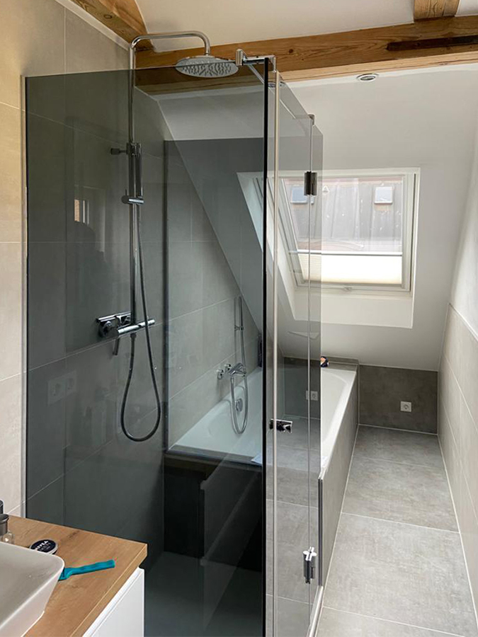 Grundsätzlich kann eine Ganzglasdusche in den meisten Badezimmern installiert werden. Es ist jedoch wichtig, den verfügbaren Platz und die vorhandene Badezimmerkonfiguration zu berücksichtigen. Eine maßgeschneiderte Lösung ist sinnvoll, um die Ganzglasdusche optimal anzupassen. Siehe z.B. auch Dusche unter der Dachschräge.