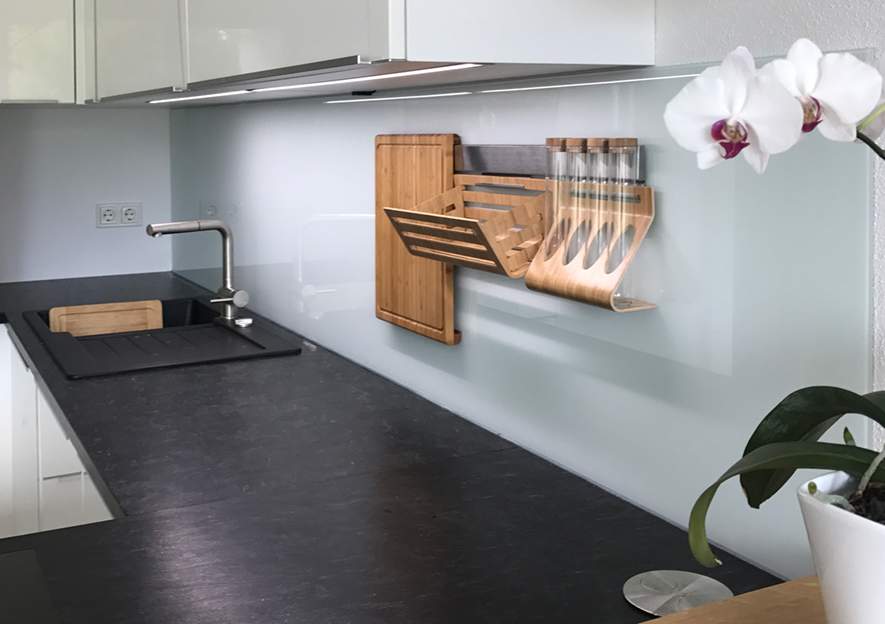 Ihre hervorragenden Produkteigenschaften machen Küchenrückwände aus Glas zur ersten Wahl. Sie sind wegen der glatten, möglichst fugenlosen Oberfläche leichter zu reinigen als Fliesen, zudem hitzebeständig und dennoch hinreichend robust, um auch an turbulenten Küchentagen ein gutes Bild abzugeben. Ihre besondere Haptik macht aus dem praktischen Wandschutz aber noch viel mehr: ein Designobjekt, das Ihre Küche als besonderen Glanzpunkt aufwertet.