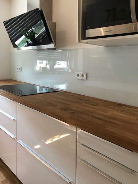 Als moderne Alternative zu Fließen liegen Küchenrückwände aus Glas voll Im Trend. Hier haben Sie die Auswahl aus Kuchenrückwänden mit Digitaldruck, lackiert, mit satinierter Oberfläche uvm. Eine maßgefertigte Arbeitsplatte aus Glas rundet das Gesamtbild Ihrer Küche ab.
