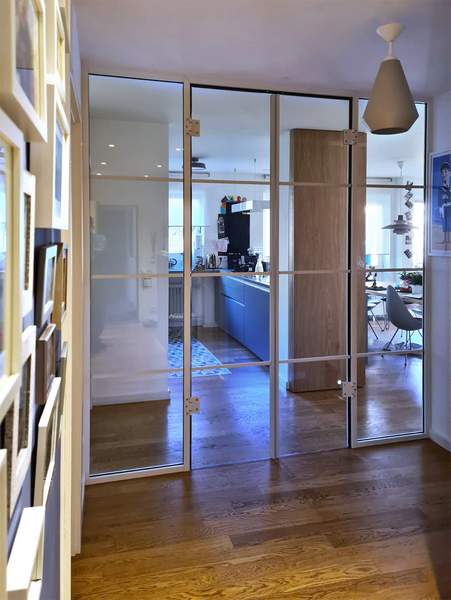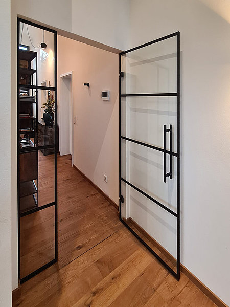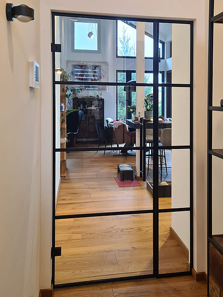 Lofttüren aus Glas sind praktisch zwischen allen Zimmerarten möglich. Sie sind formschöne Raumtrenner zwischen Küche und Wohnbereich, zwischen Schlafzimmer und Ankleide oder als Loft-Glastür zum Treppenhaus. Mit ihrer lichten Wirkung schaffen sie harmonische Übergänge und können durchaus auch als Gestaltungselement eingesetzt werden, um Raumfluchten oder Gänge visuell aufzuwerten. Industrietüren stehen für Sachlichkeit und Zeitgeist. Eine Lofttür aus Glas vermittelt per so Modernität, aber auch ein großes Maß an Nonkonformität und Individualismus. Sie bringt mit minimalistischer Eleganz Lichtfülle in Raumübergänge, stellt damit einen wohltuenden Helligkeitstransfer zwischen den Zimmern her und potenziert den Effekt des natürlichen Lichteinfalls in Ihrem Zuhause oder am Arbeitsplatz.
